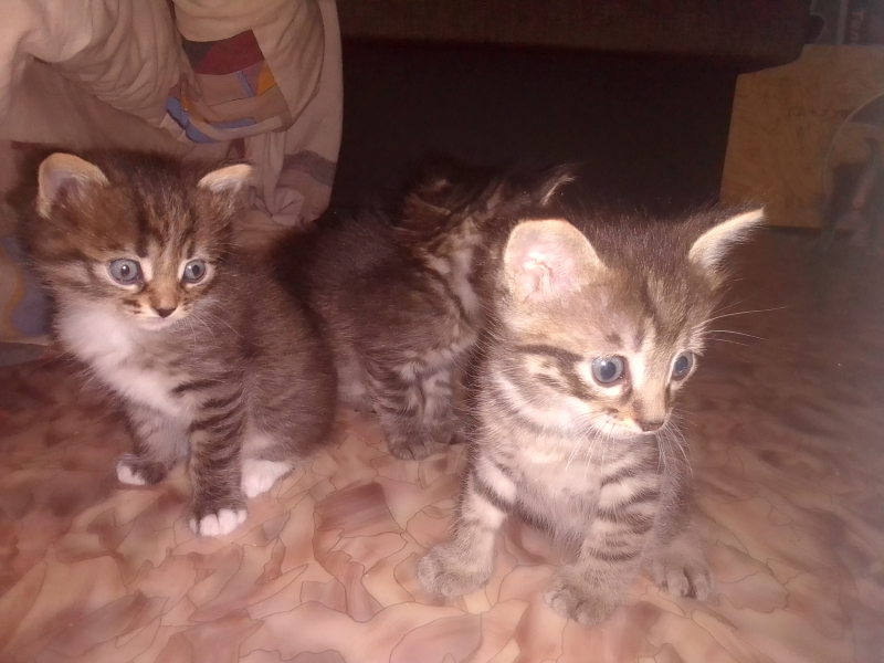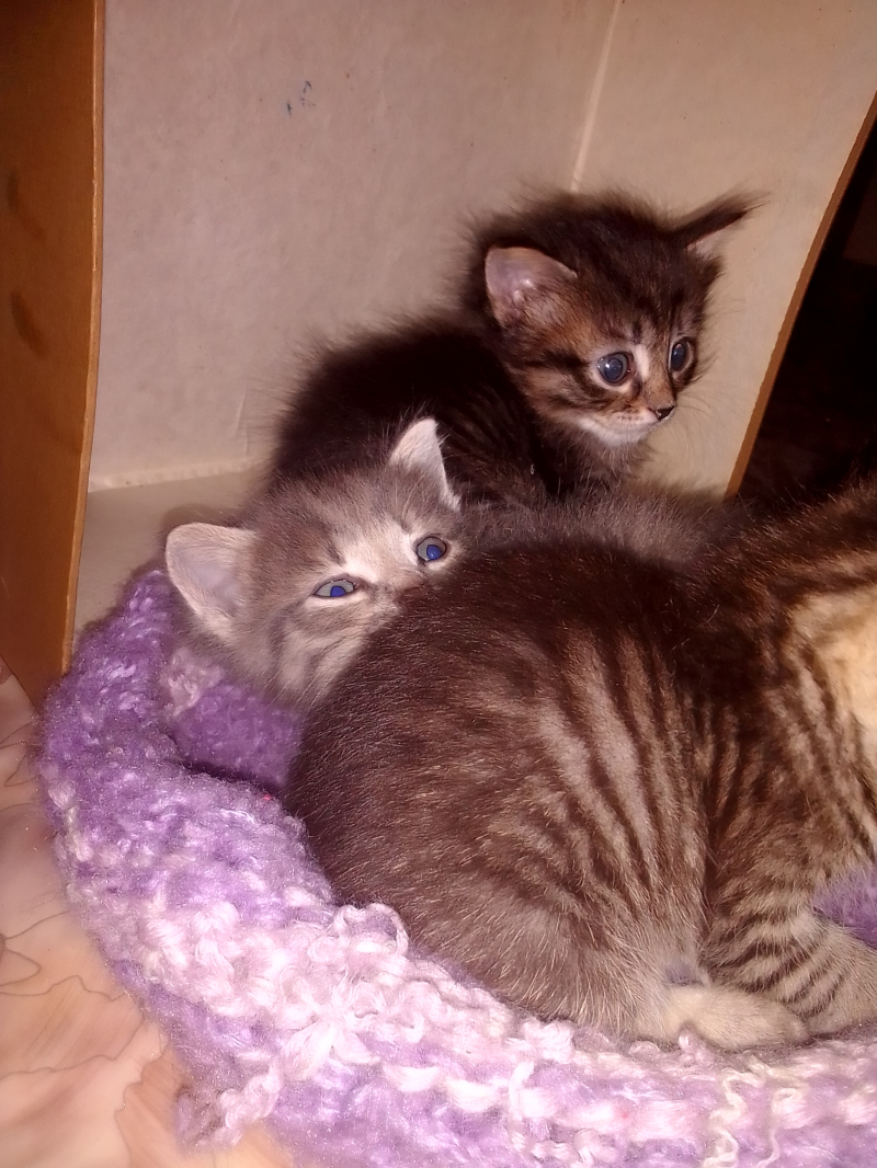Котята возраст 1 месяц два мальчика и одна девочка ищут хороших хозяев, кушают самостоятельно, к горшочку...