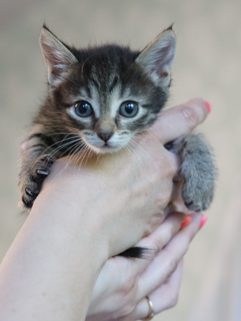 Симпатичные серенькие в полоску с рыжеватостью котята-девочки ищут дом и добрых хозяев. Игривые,...