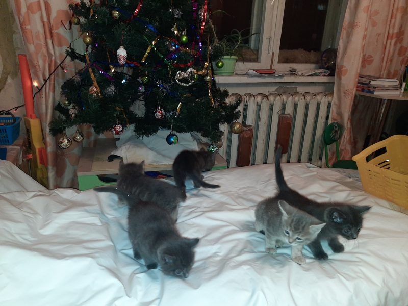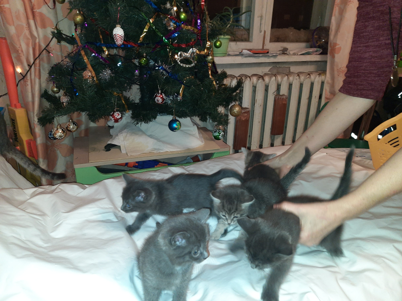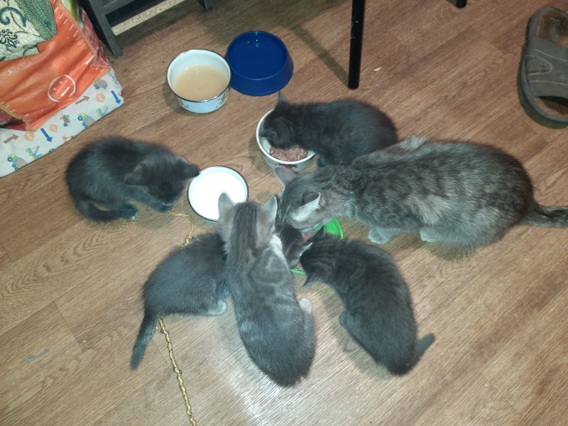 Котята обыкновенные. Родилось 5 штук. Есть котики и кошечки. Начали есть с плошки. Есть потемнее и посветлее. Смотри фото. Родились 20 ноября. Все здоровенькие и шустрые. Сделайте...