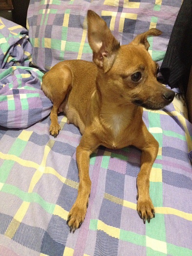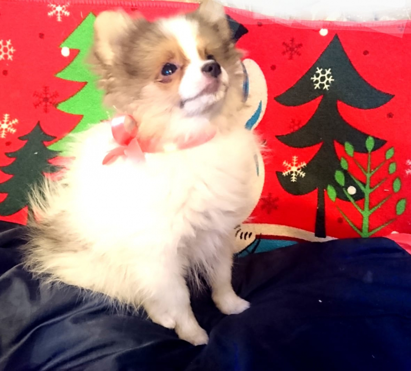 Мини чихуа, белый с рыжими пятнами. Мальчик. Не правильный прикус. Во дворе российской 12 ( академ)