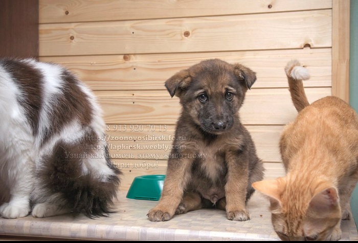 Щенок девочка помесь овчарки. Подойдёт для охраны. Кушает много. Будет крупная, сейчас 4 месяца. Весит около 10...
