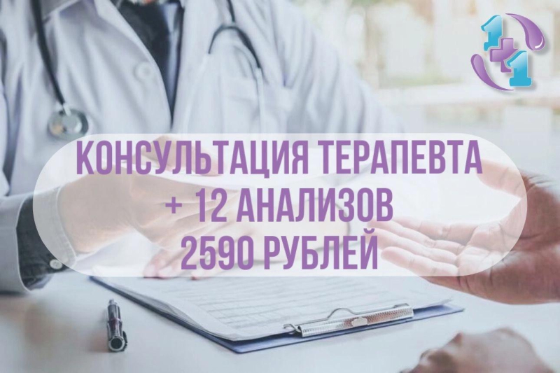 Консультация терапевта плюс 12 анализов за 2590 рублей в Клиника 1 1!