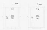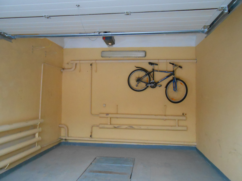 2 этажа. Общая площадь: 144 м². Гаражи стоят друг над другом. Верхний этаж размером 11.9 х 6.2 м. Двое ворот высотой 2.3 м, шириной 3.5 м. Верхний гараж сквозной и без отделки....