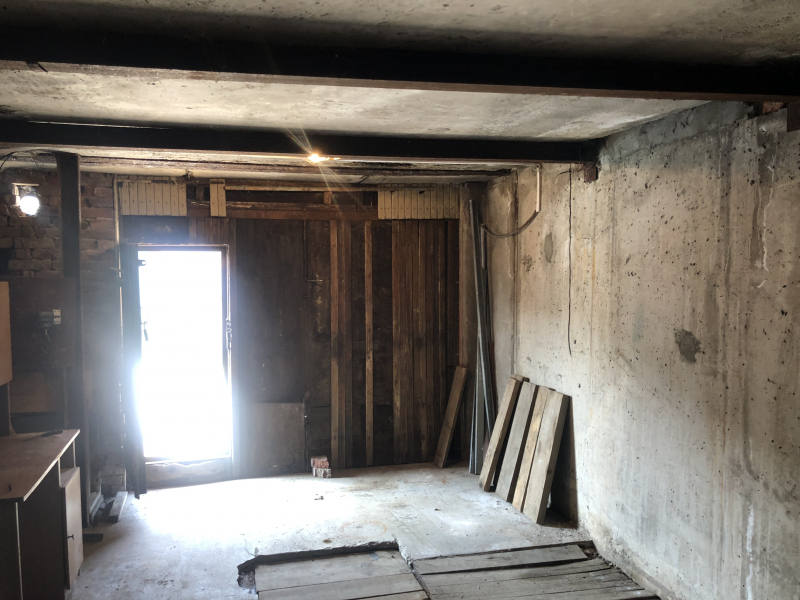 Южная сторона, тех этаж, погреб. Ворота и потолок обшиты рейкой.Торг есть.
