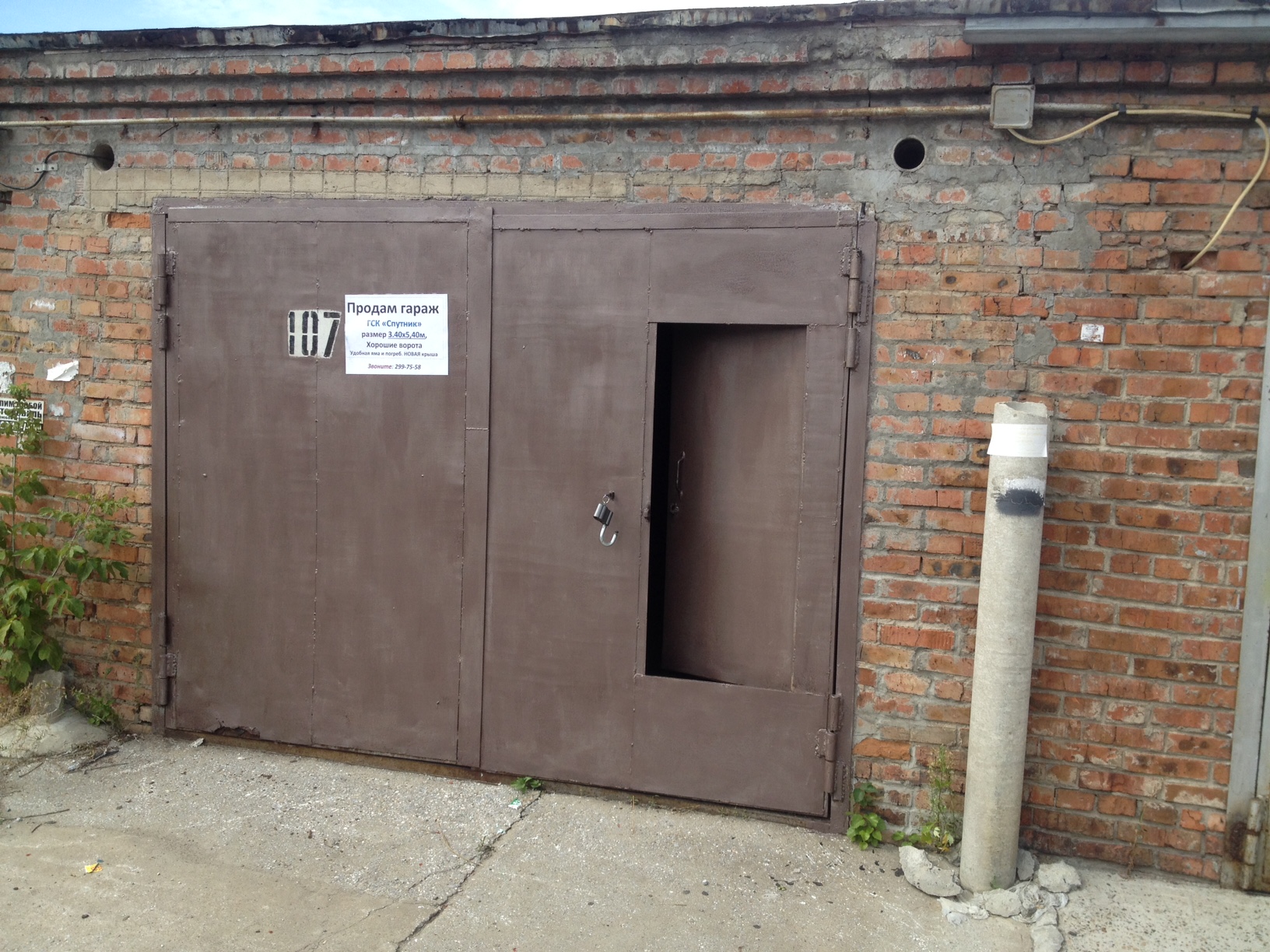 В продаже кирпичный гараж. Размеры: 5,8*4 кв.м. Ворота: 2,4 высота, 2,6 ширина. Пол залитый бетоном, стены наполовину покрашены и побелены. Подведено электричество. Есть шлагбаум....