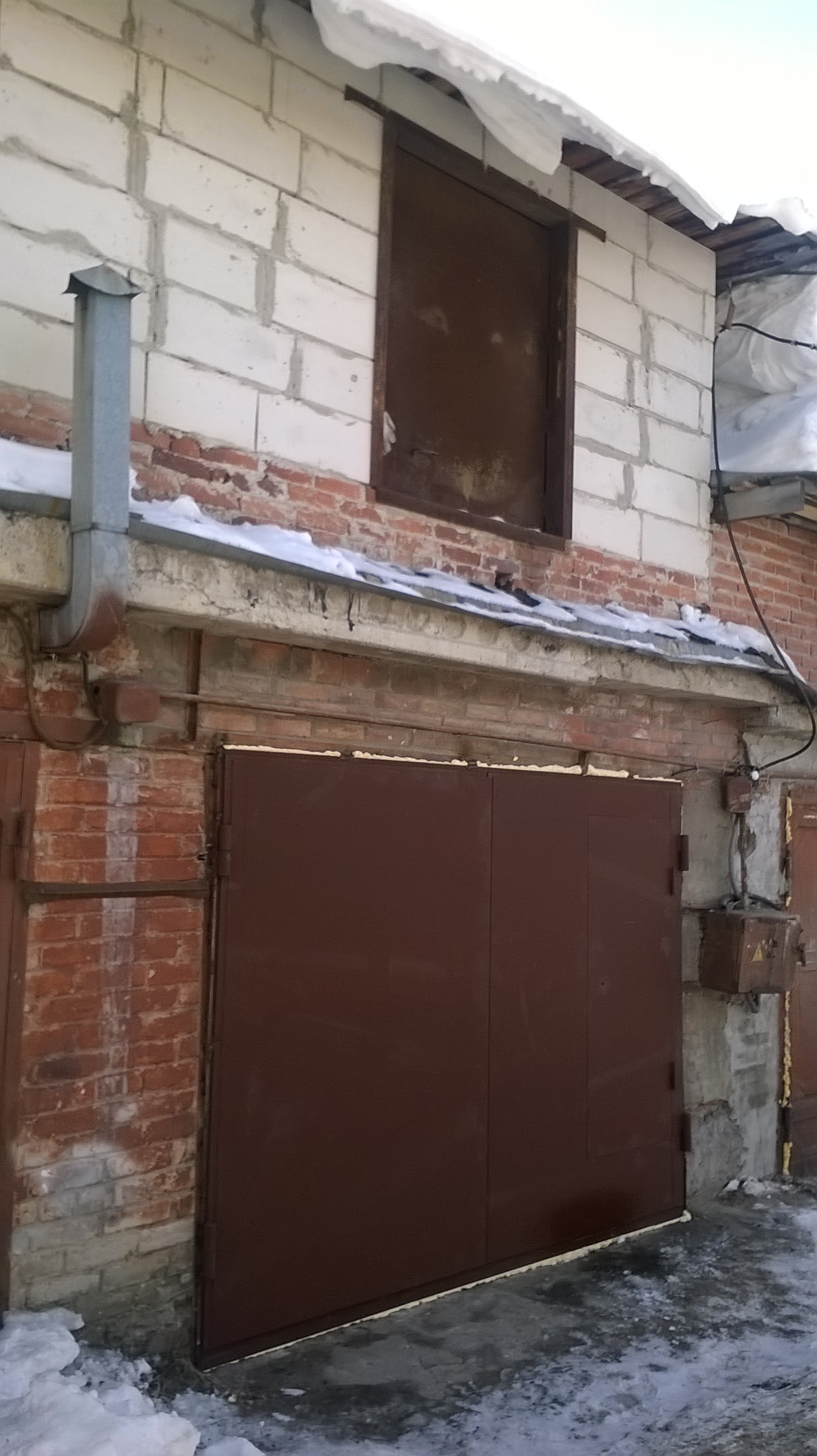 Гараж не достроен, размеры 6*9 м. Высота ворот 3 м. Нужны ворота, штукатурка, пол.