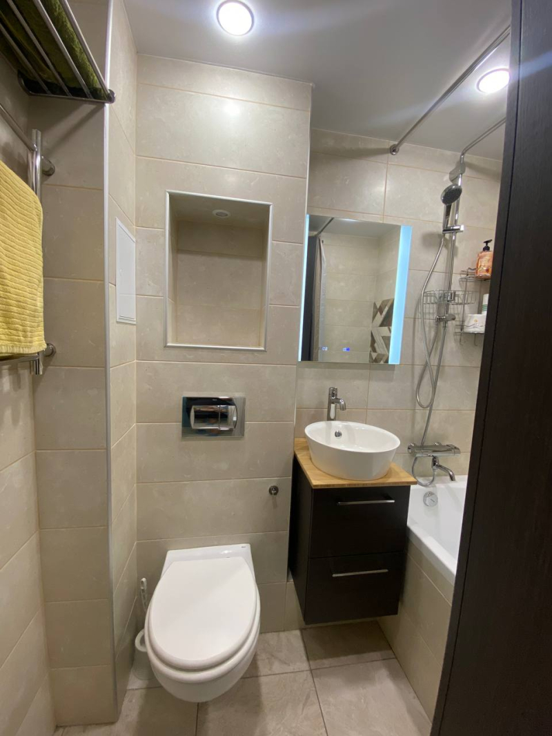 Уютная студия с ремонтом и мебелью подходит для проживания и аренды .