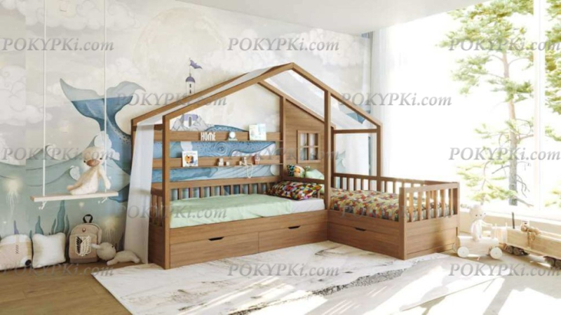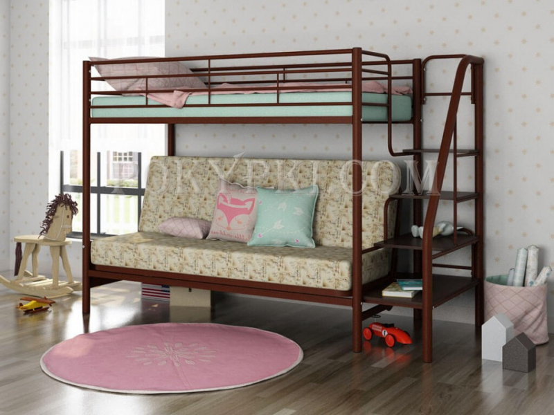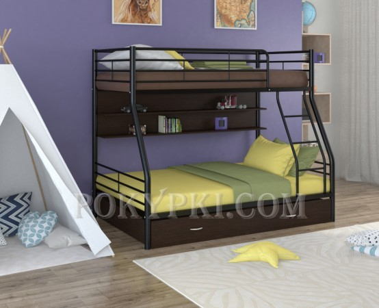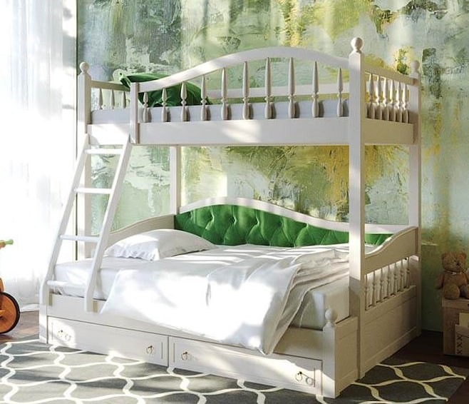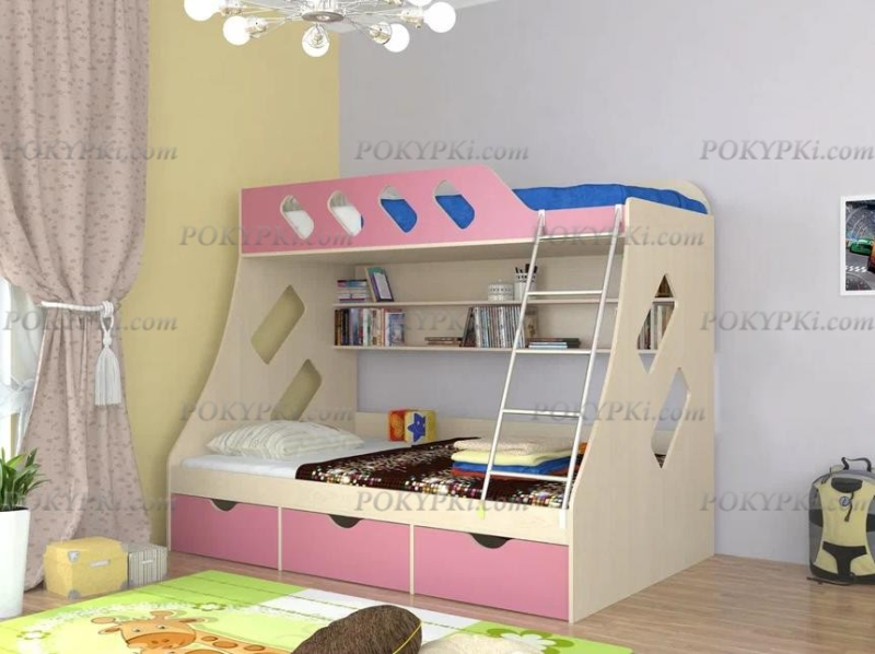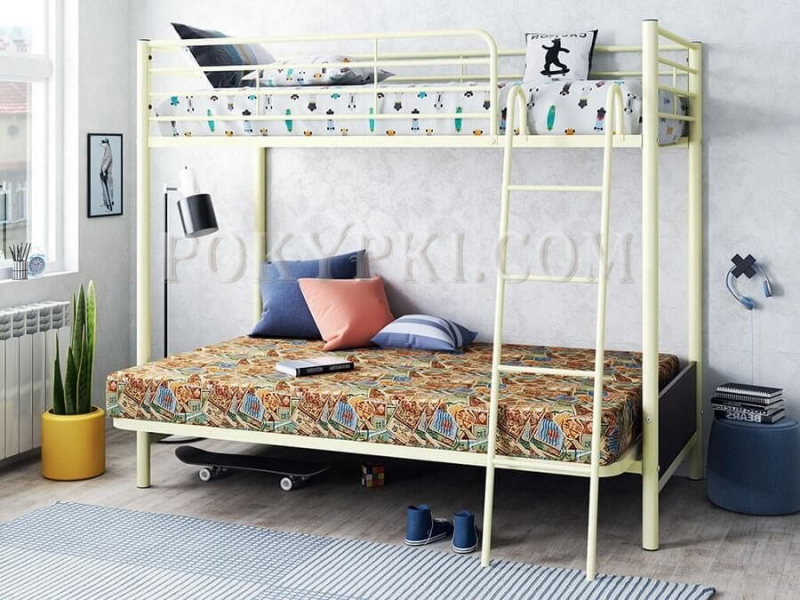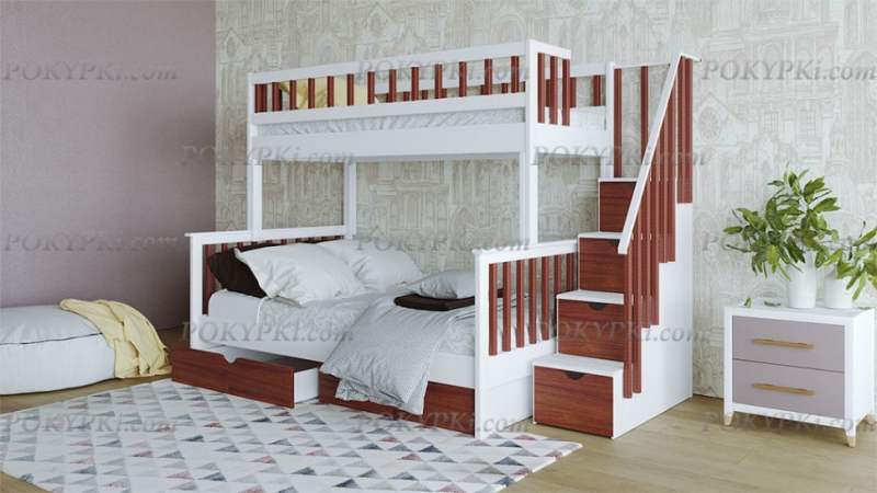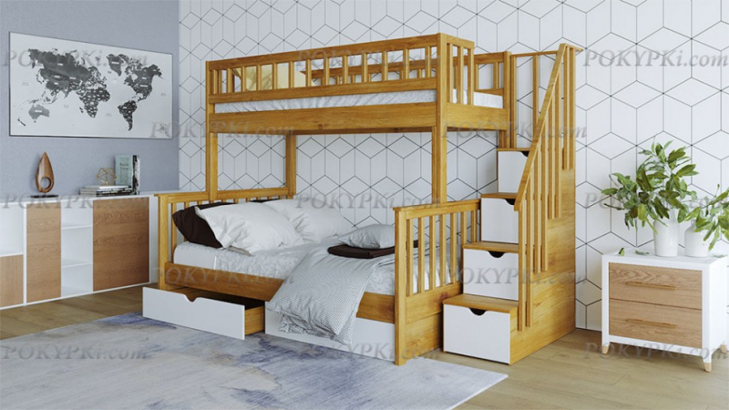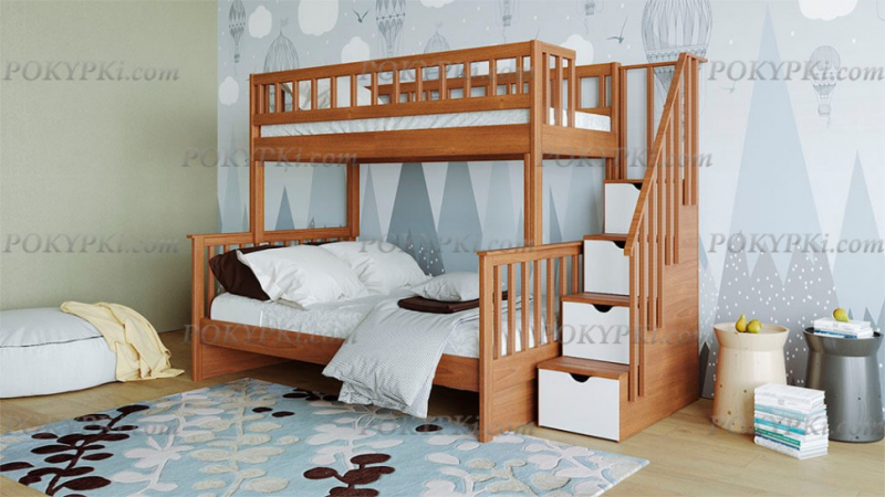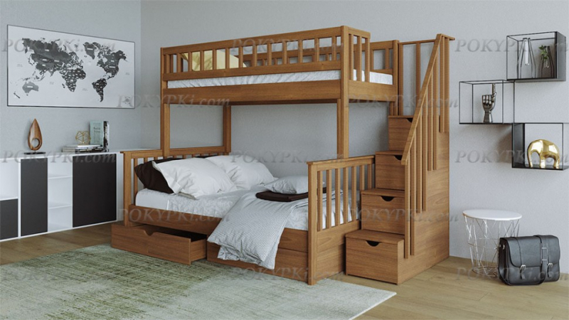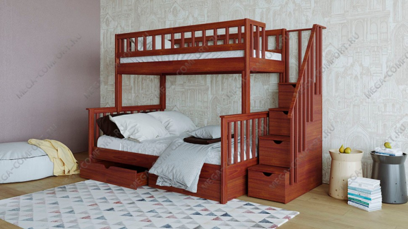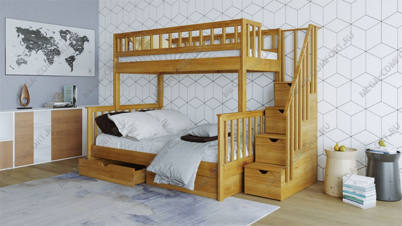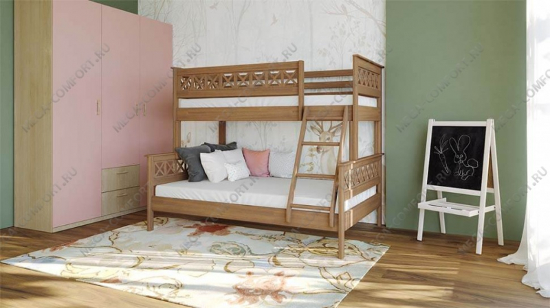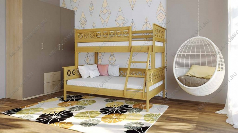 Двухъярусная кровать из массива сосны с тремя спальными местами. Такая мебель заметно экономит место в небольших по площади квартирах. Доставка по Москве бесплатная. Сборка в день...