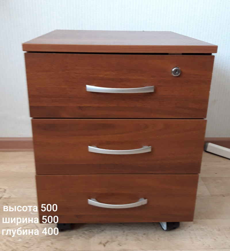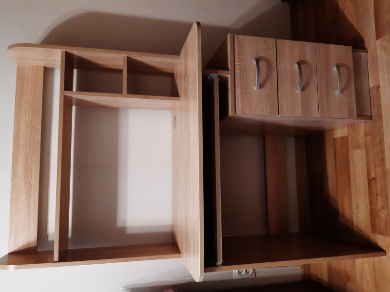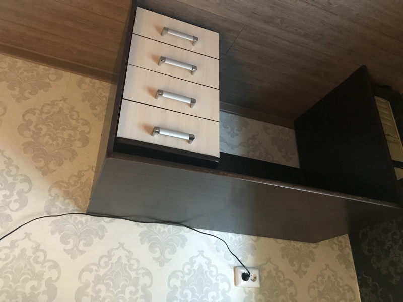 Продаётся надёжный удобный письменный стол (ЛДСП). Изготовливался на заказ. По бокам 2 встроенные тумбы с ящиками (2*4 шт) и один широкий ящик посредине. Внизу в двух местах...