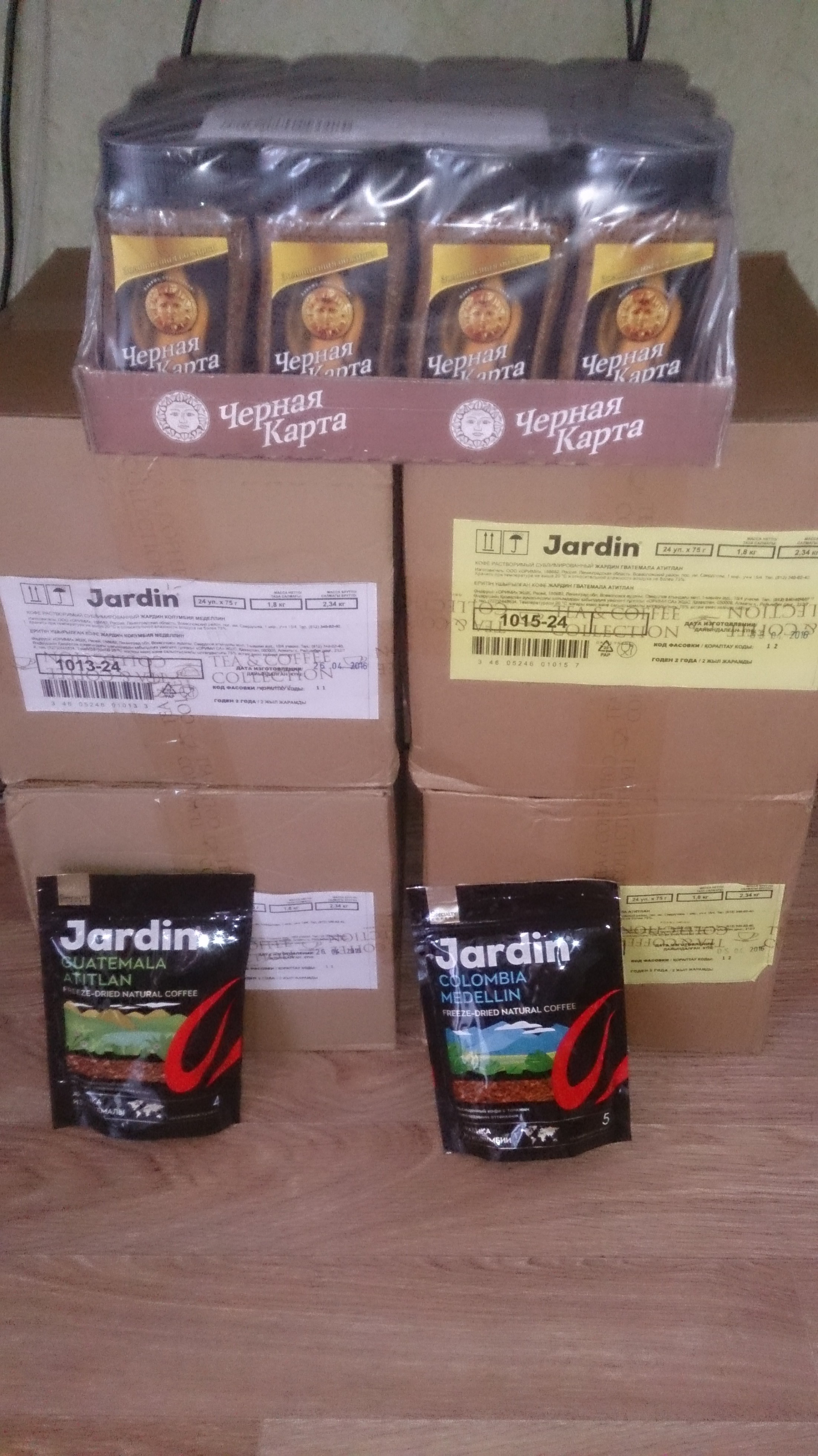 Продам растворимый сублимированный Кофе Jardin в мягкой упаковке 4 коробки по 24 пачки (75 грамм) в каждой. 2500-3000 за коробку. Блок Чёрной карты из 12 стеклянных банок по...