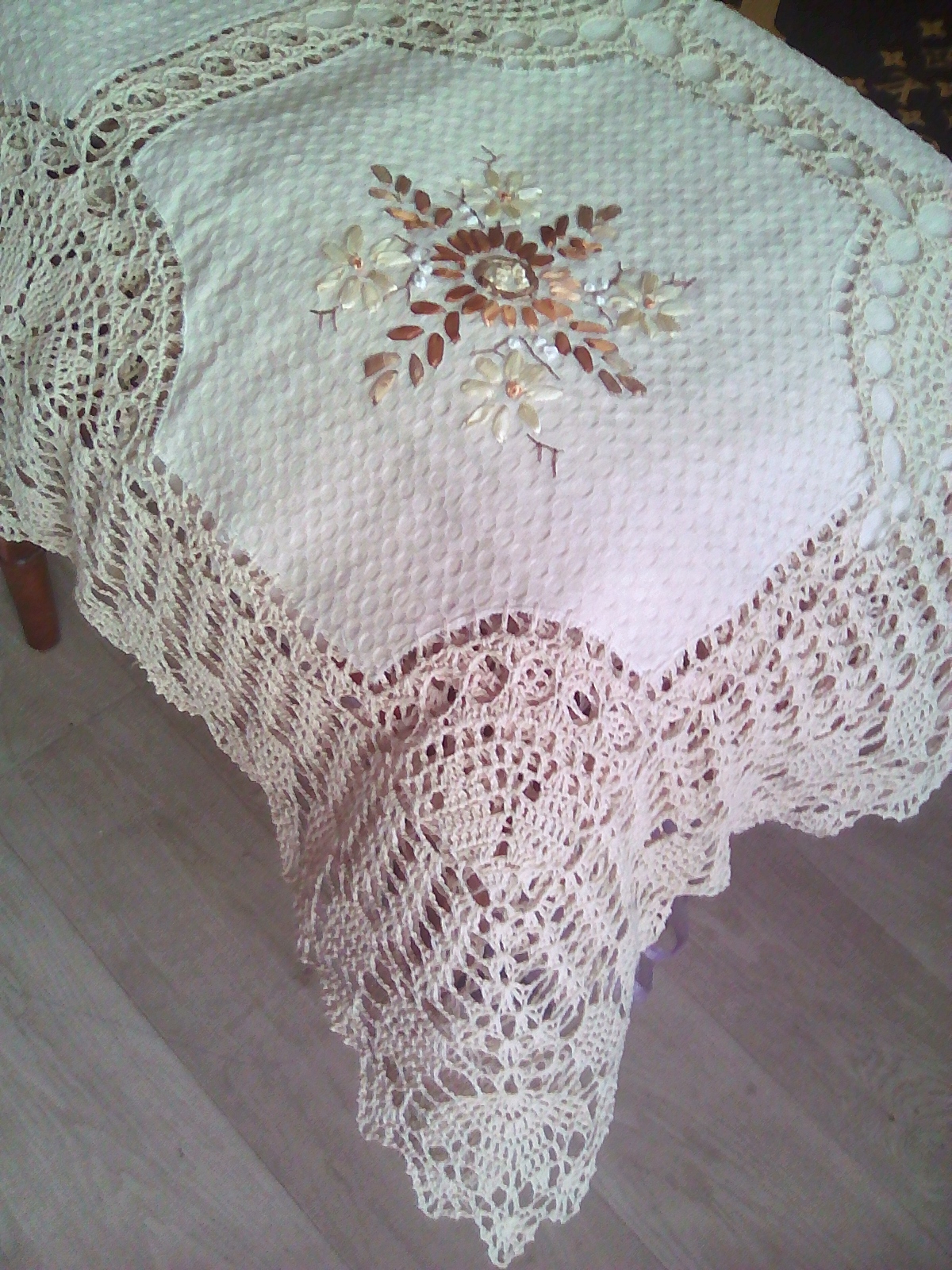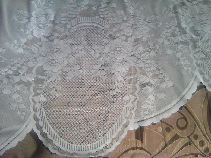 Продам скатерть новую, лен с кружевной отделкой