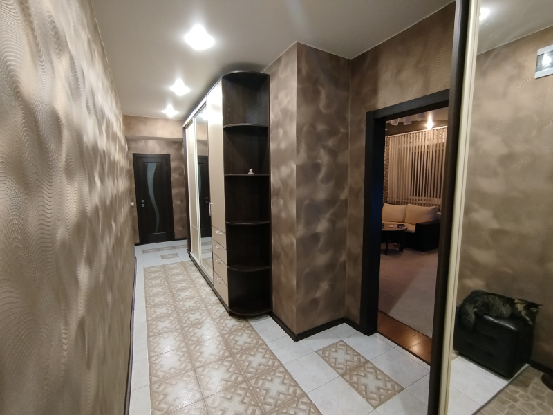 Дом кирпичный в центре Бердска. В шаговой доступности парк, 3 школы, 3 садика, остановки общественного транспорта, магазины. Квартира светлая, теплая на две стороны, балкон и лоджия с пластиковым остеклением и утеплением, обшиты вагонкой, большой коридор с гардеробной (2 встроенных шкафа). Совмещенный санузел 6 кв м шкаф навесной , в шкафу бойлер, плитка итальянская, ванна 1,80. Свежий ремонт, везде натяжные потолки, светильники. Чистая продажа в связи с переездом! Кухня 15 кв м, светлая,балкон во двор.Остается большой кухонный гарнитур, Спальня 15 кв м, встроенный шкаф, на полу ламинат.