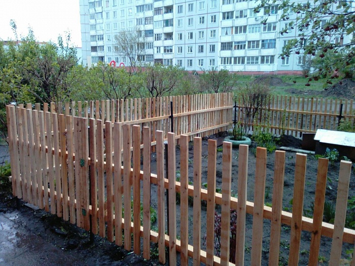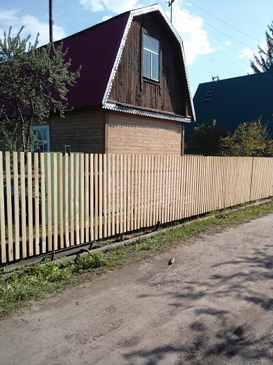 Продам деревянный забор из штакетника, секции по 3 метра. Высота забора 1,5 метра, штакетник 50мм на 25мм, прожилины брусок 50мм на 50мм. В наличии и под заказ, любые объемы
