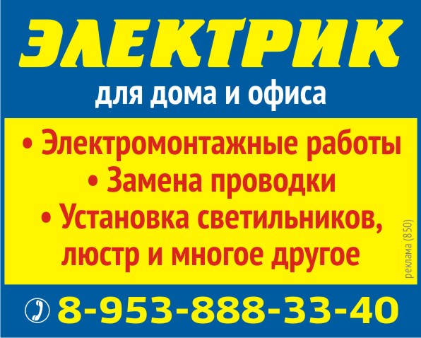 Электромонтажные работы. Замена электропроводки, установка розеток, выключателей, электросчетчиков и др. Монтаж всех возможных видов бра, люстр, светильников. Подключение варочных панелей, духовок, электроплит, посудомоечных машин, водонагревателей. Установка и замена автоматов; сборка и монтаж электрощитков. Имею патент на электромонтажные работы.