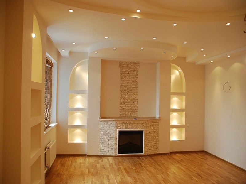- возведение одно- и многоуровневых потолков (гипсокартон)