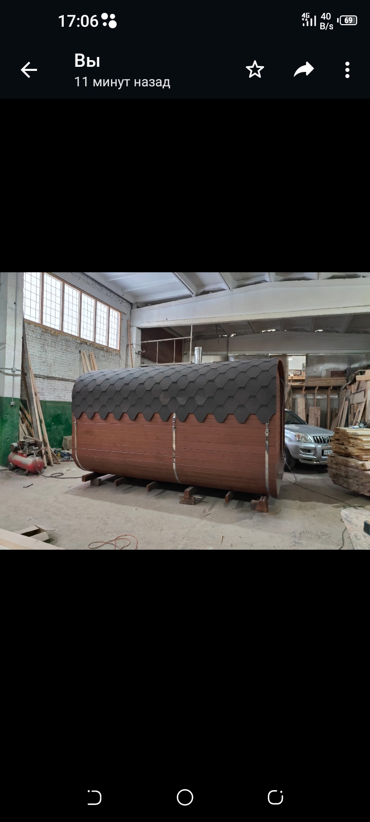 Бани-бочка от 2-6 м под ключ, фото дополнительно вышлю. Изготавливаем 5 лет. Цена может быть снижена, если печь и комплектующие сами купите.