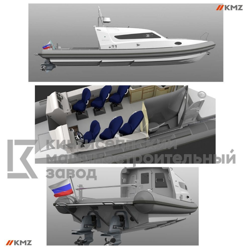 Одним из направлений деятельности организации является поставка катеров специального назначения. В рамках расширения производимой продукции производственного холдинга «КМЗ» спроектировало новую модель лодки 12-метрового ряда на платформе RX-1170, которая является быстроходным всепогодным катером с большим запасом хода.