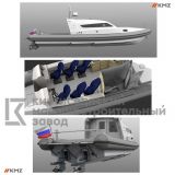 Катер имеет жесткую модульную конструкцию с надувными баллонами, а ходовая рубка совмещается со служебно-бытовой зоной, которая может быть выполнена индивидуально по техническому заданию Заказчика.