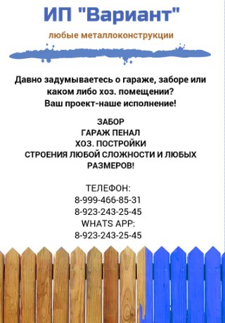 ИП Вариант, предоставляет услуги в области установки любых металлоконструкций (Гаражи, Заборы, Хоз-Постройки и тд.)