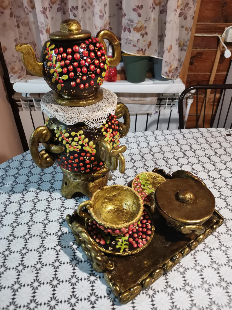 Продам съедобный пряничный комплекс. Все, что видите на фото - съедобное. Самовар, заварочный чайник, сухарница, поднос, чашка, тарелка, блюдце.