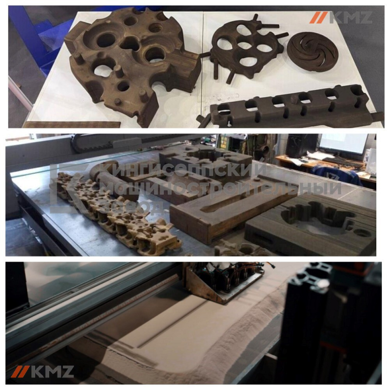 Модельное производство и цех аддитивных технологий военно-промышленного холдинга «Кингисеппский машиностроительный завод» активно работают для обеспечения потребностей литейных участков заводов. На литейные участки площадок Назия и Зимитицы переданы печатные стержни на рабочие колеса, напечатанные на 3D-принтере собственной разработки КМЗ.