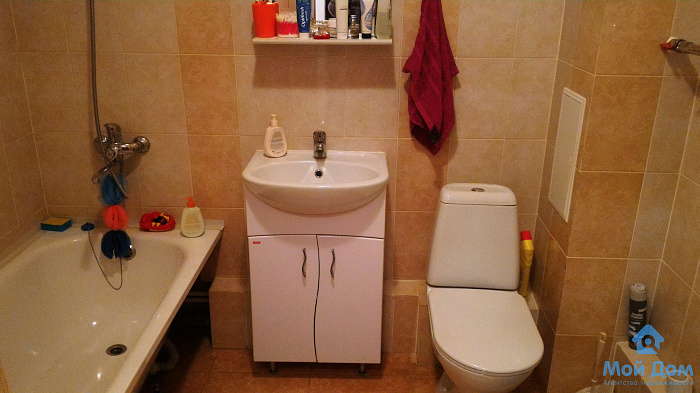Хороший ремонт: потолки натяжные, ламинат в комнате, в коридоре и с/у - плитка на полу, в ванной кафель до потолка, большая чугунная ванна, входная дверь хорошего качества. Комфортный этаж, прекрасный вид из окна во двор, на зеленый сектор.