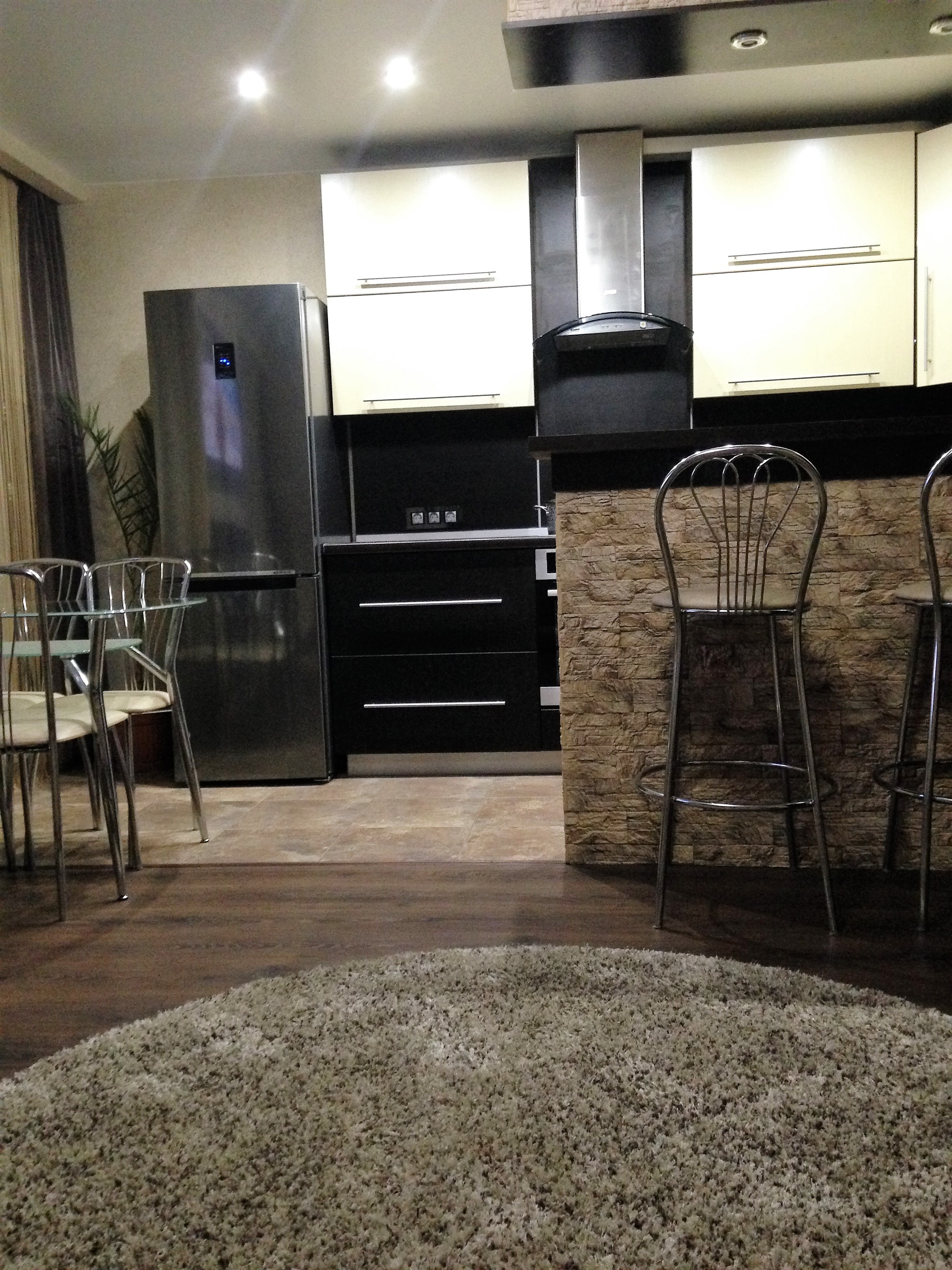 Две комнаты (кухня и одна из спален) были объединены в большую и просторную кухню-гостиную.