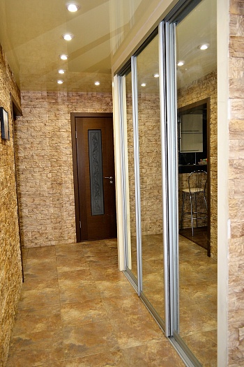 Сделан хороший качественный ремонт. На полу керамическая плитка и ламинат. Стены отделаны искусственным камнем и обоями . Натяжные потолки. Установлена качественная дорогая электрика. Предусмотрены и организованы различные варианты освещения. В коридоре, ванной комнате , сан.узле и на балконе положен теплый пол. В коридоре и в спальне встроенные зеркальные шкафы-купе.