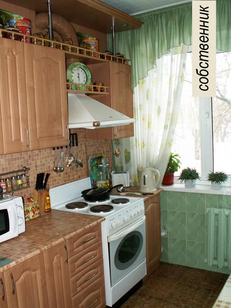 В квартире остаётся встроенный кухонный гарнитур.