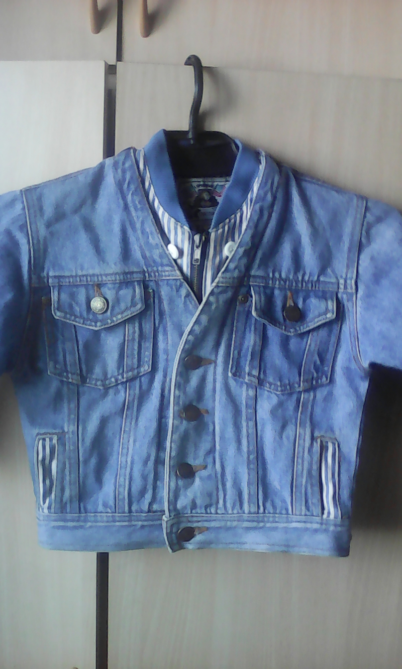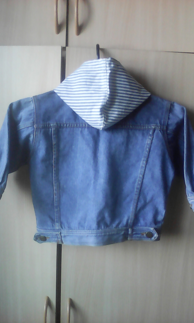 Продам джинсовую куртку с капюшоном на мальчика 1-2 года, б/у один сезон, в хорошем состоянии, 6 карманов (2 внутренних, 4 наружних), капюшон на пуговицах (отстегивается), цвет как на фото, длина: 40 см, длина рукава 30 см, куртка застегивается на молнию и пуговицы. Смотреть на ул. Одоевского 1/8, Первомайский район, КСМ или доставка в Щ, Академгородок, подробнее по телефону