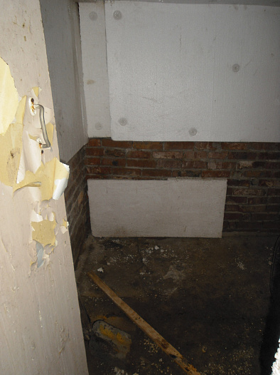 По правой и задней стенах по низу пластиковые панели