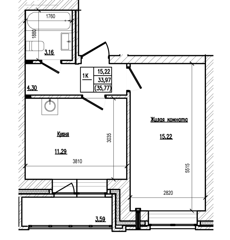 Общая площадь кв.(дом): 35