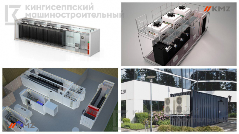 Производственный холдинг Кингисеппский машиностроительный завод осуществляет проектирование контейнерного центра обработки данных в собственном конструкторском бюро, производство и сборка осуществляется в заводских условиях.