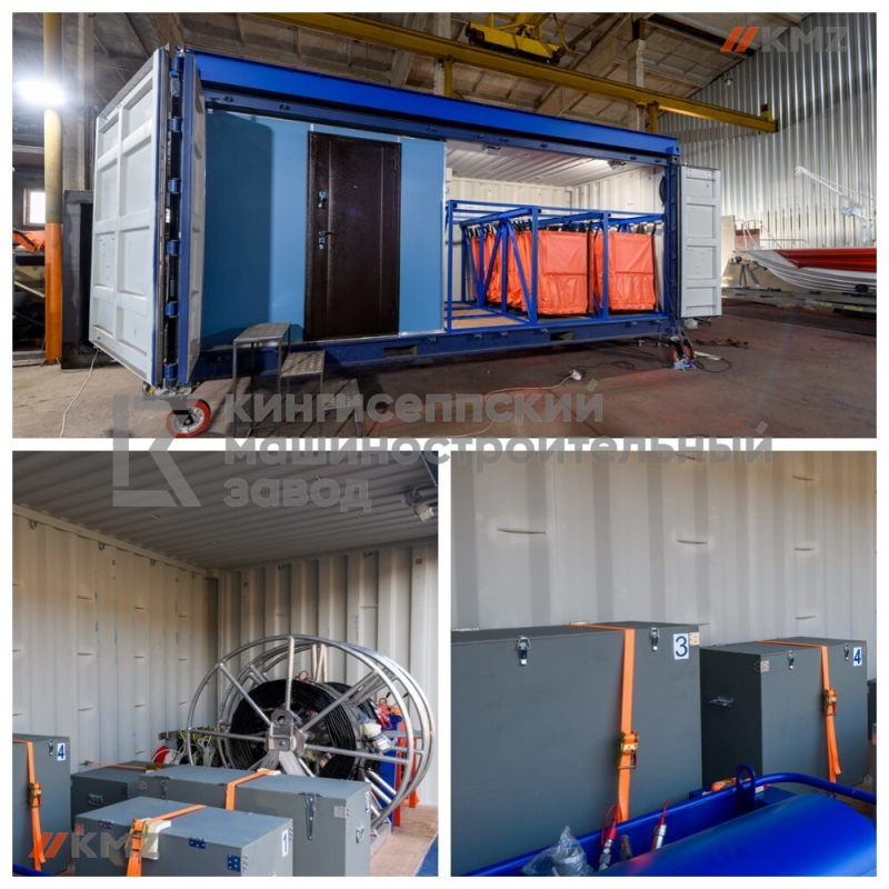 Военно-промышленный холдинг «Кингисеппский машиностроительный завод» предлагает контейнерный комплекс ликвидации аварийных разливов нефтепродуктов (ЛАРН) и производственного экологического контроля (ПЭК) (далее – «Комплекс ЛАРН-ПЭК»). Комплекс ЛАРН-ПЭК изготавливается, комплектуется и поставляется по разработанной документации ООО «КМЗ». Комплекс размещен в 20-футовых контейнерах (ГОСТ Р 53350 2009) и оснащен рейдовым рабочим катером-бонопостановщиком. Оборудование комплекса позволяет проводить работы по локализации и сбору нефтепродуктов на водной (и твёрдой) поверхности, а также перекачивать собранную нефтеводяную смесь в резервуары временного хранения. После ликвидации разлива оборудованием, представленным в комплексе, осуществляется производственный экологический контроль для определения чистоты водной (и твердой) поверхности. Используемое оборудование: 1.Оборудование производственного экологического контроля, скомпонованное в специализированный модуль. 2.Комплекс средств для локализации и ликвидации разливов нефтепродуктов. 3.Рейдовый рабочий катер-бонопостановщик. 4.Комплект современного оборудования для анализа проб. 5.Специализированное программное обеспечение.