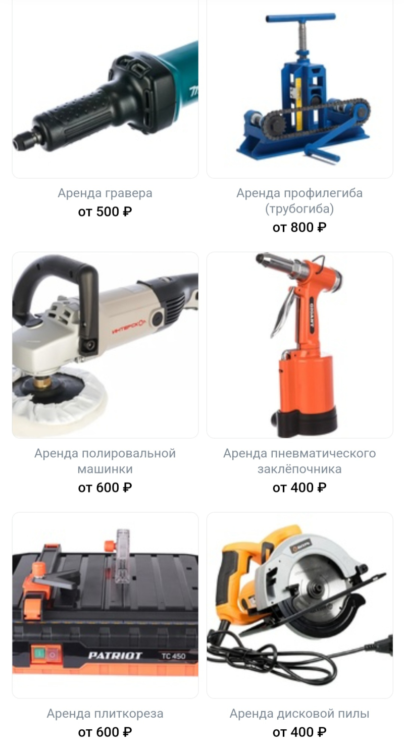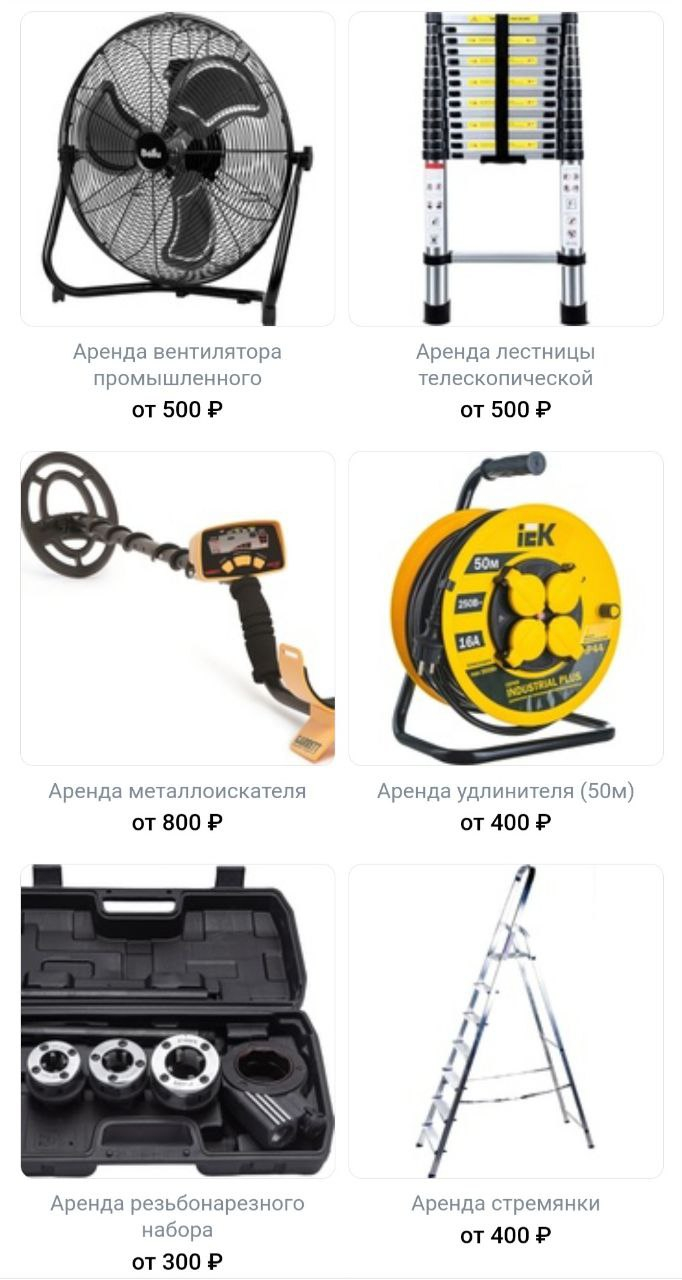 Сдаём в аренду различные товары для строительства, ремонта, садовых работ, домашнего праздника (генератор мыльных пузырей, дыма, проекторы, микрофоны, серебряная дискотека), бытовых дел (пароочиститель, робот мойщик окон) и много всего другого.