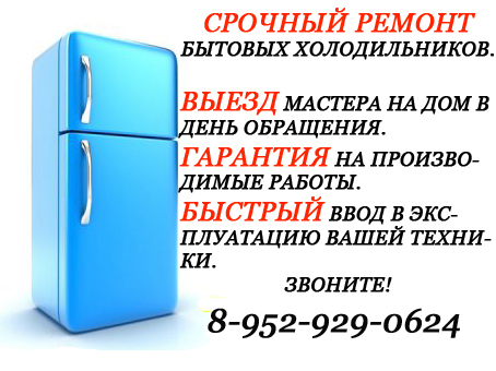 Ремонт холодильников любых производителей на дому. Срочный выезд. Бесплатная диагностика. Доступные цены. Гарантия на проводимые работы 12 месяцев.