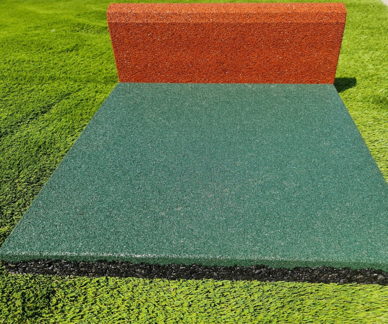 Верхний слой прессуется из резиновой крошки мелких фракций. Его назначение – обеспечить высокий коэффициент трения, стойкость к истиранию и агрессивным средам, придать покрытию привлекательный внешний вид.