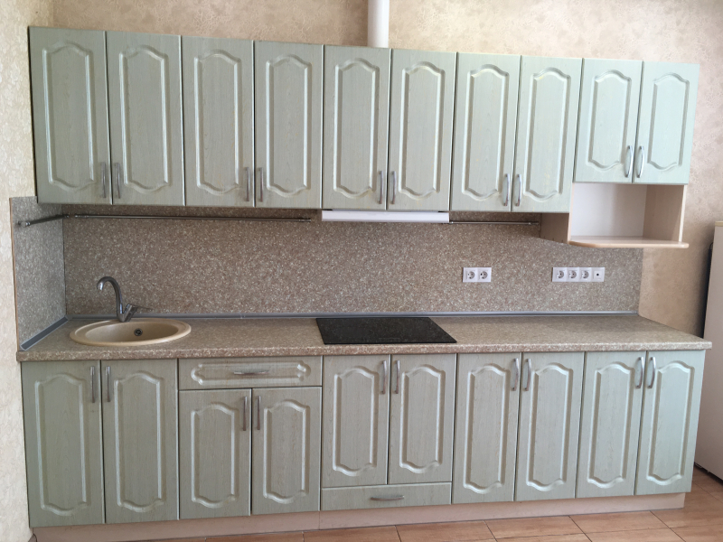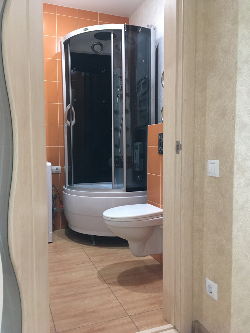 В квартире имеется только то, что есть на фото, а именно: кухонный гарнитур, холодильник, стиральная машина, душевая кабина.