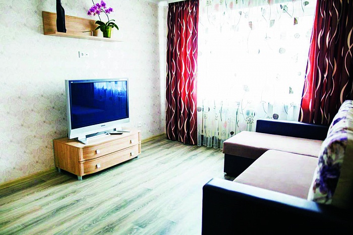 Наша квартира находится в спальном районе. Одна комната с раскладным диваном. Для гостей есть всё для проживания: электроплита и посуда, микроволновка, чайник, телевизор, фен, высокоскоростной WiFi.Современный ремонт.