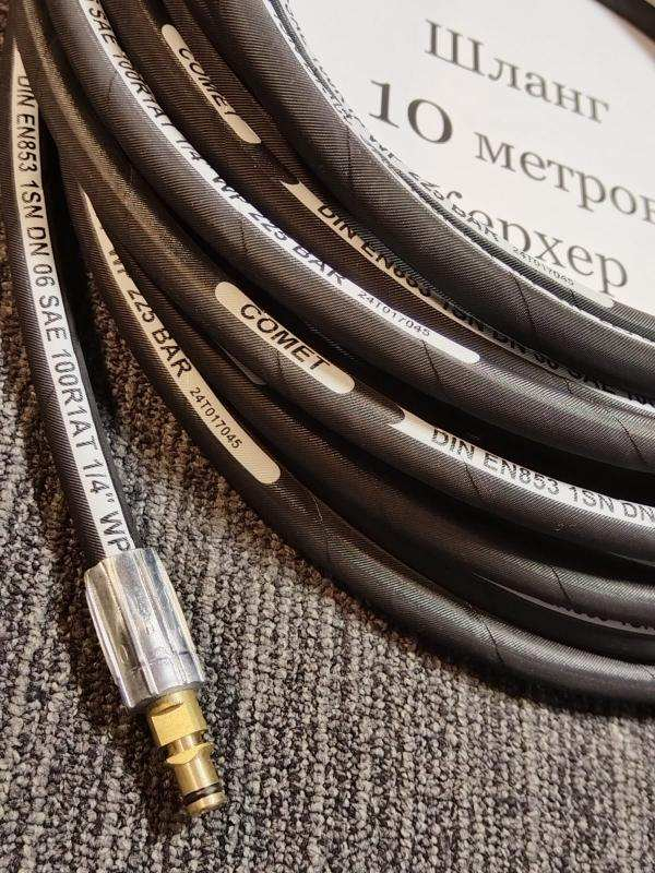 Шланги для моек высокого давления подходят как для профессиональных аппаратов на 380 В и бензиновых двигателей, так и для бытовых моделей. Шланги COMET (Италия) выдерживают давление до 400 бар, имеют двойную металлическую оплётку, внутренний диаметр 6 и 8 мм. Они тонкие, гибкие, оснащаются гайками 22х1,5 или другими фитингами под заказ. Длина возможна до 100 метров, что удобно для любых задач.