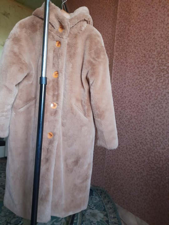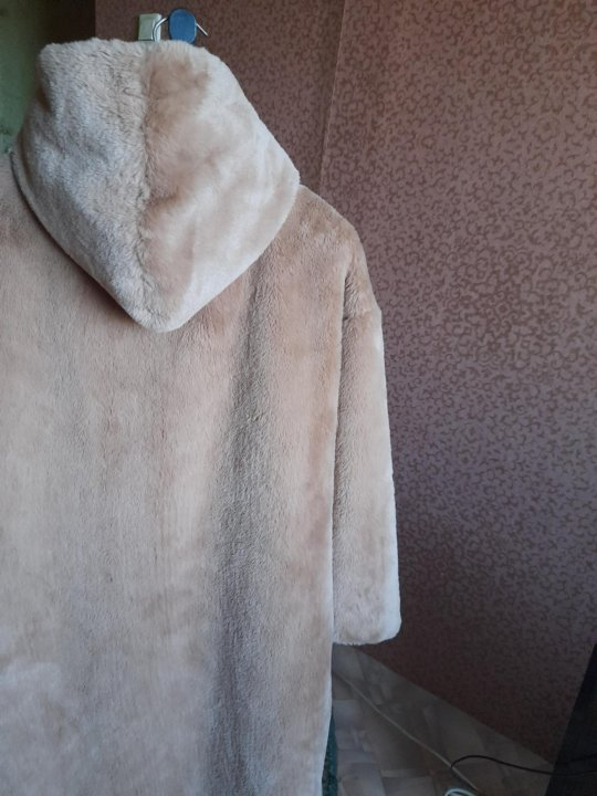 Шубка мягкая, длинная, с удобным капюшоном. Размер 44-46. Цвет намного лучше, чем на фото.