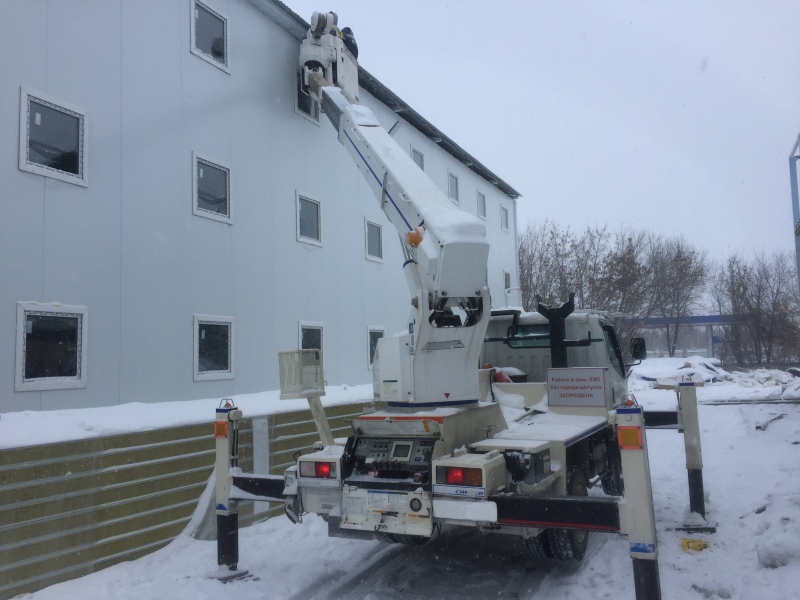 - Есть лебёдка с мини-краном на 500 кг. Удобна при монтаже сэндвич-панелей, электротехнических работ - все операции возможно производить одной автовышкой не прибегая к услугам автокрана.