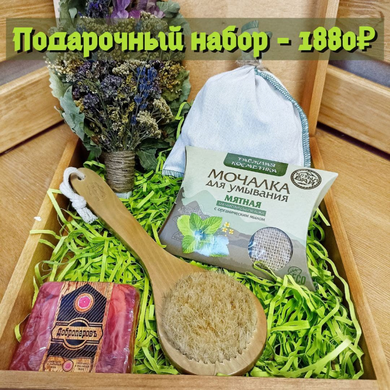 Веники для бани (берёза, дуб, липа 2 вида, эвкалипт, осина, рябина, малина, черёмуха, калина), бондарные изделия, щетки для сухого массажа, шапочки из натурального меха, эксклюзивные шапочки ручной работы из конопляного волокна, тапочки из натурального меха, подарочные наборы, травы, пучки трав, запарки, подарочные коробочки, упаковочная бумага, новогодние подарочные пакеты.
