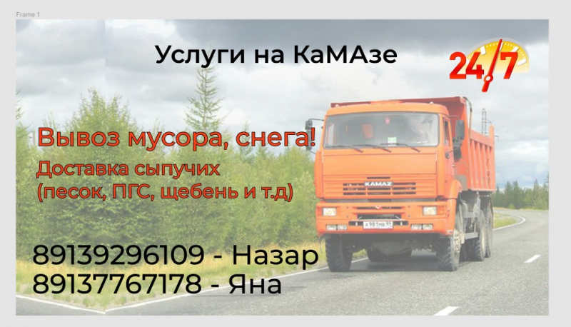 Услуги КамАЗа! Доставка сыпучих, вывоз мусора! Круглосуточно.