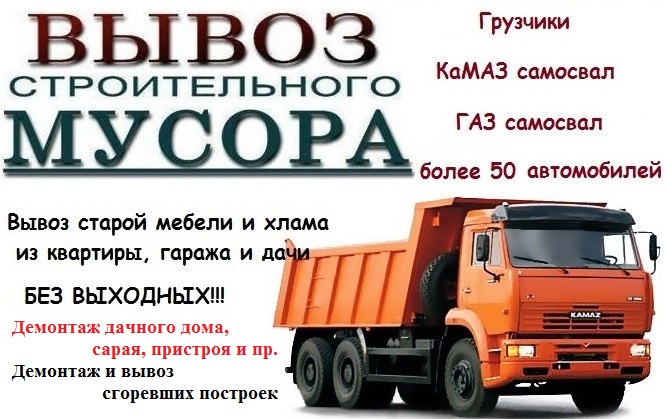 Вывезем мебель,пианино,мусор на 20-ти кубовой машине.Влезет все.Демонтаж мебели, оборудования, стен, полов,штукатурки, дач, домов, бань, веранд, парников, беседок.Работаем сами на себя(русские).Цены недорогие.Звоните в любое время.