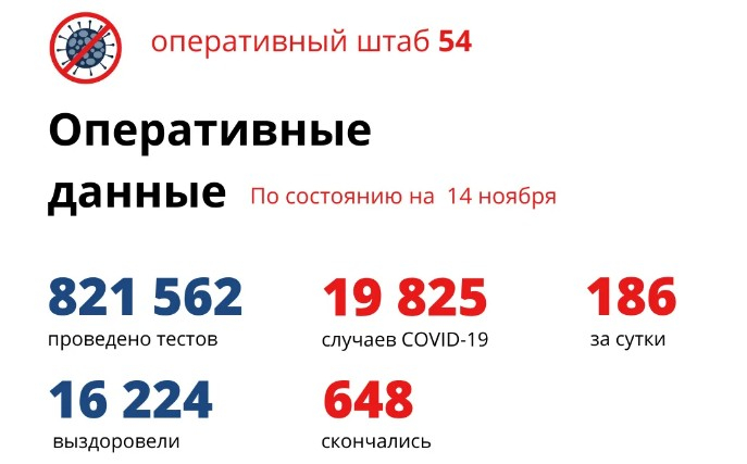 С 8 по 14 ноября в регионе каждые сутки выявляли от 174 до 186 заболевших. Чтобы обнаружить инфицированных, ежедневно делают более 10000 ПЦР-тестов, сообщил на брифинге 13 ноября министр здравоохранения Новосибирской области Константин Хальзов.