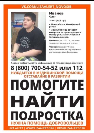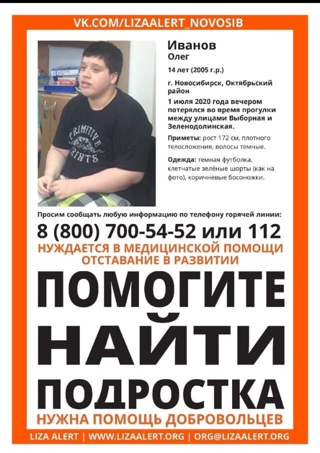 С момента пропажи 14-летнего Олега Иванова прошло уже 10 дней. Его ищут полиция и волонтёры. У ребёнка проблемы со здоровьем.