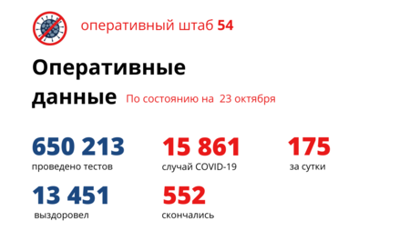 По информации оперштаба, за последние 24 часа вирус впервые обнаружен у 175 человек. Всего в регионе с начала пандемии заболевших 15861 человек. После курса лечения за сутки выписаны 98 пациентов (всего вылечился 13451 больной).