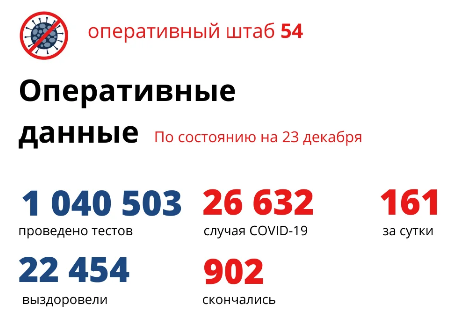 Как сообщают в оперативном штабе Новосибирской области, за последние сутки коронавирус обнаружен у 161 человека (вчера впервые выявленных больных было на 5 больше), после лечения по выздоровлению выписаны 233 жителя региона.