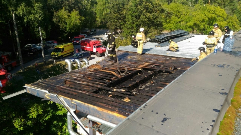 Сегодня днем начался пожар в кафе «Веранда» около гостинцы «Золотая долина». Из заведения и гостиницы эвакуировали 60 человек.